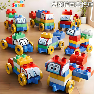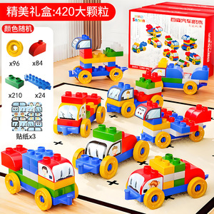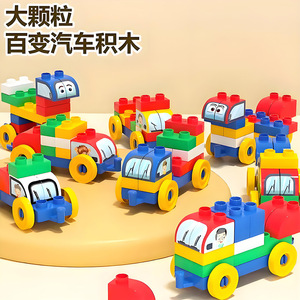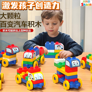 儿童大颗粒积木小车早教益智拼装可啃咬男女孩一6岁生日礼物宝宝