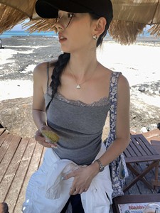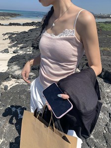 黄峥韩版纯欲毛织蕾丝带胸垫吊带背心女秋季收腰褶皱打底530047