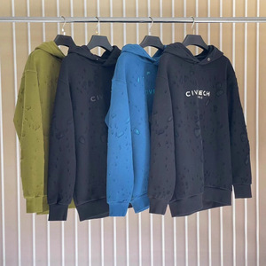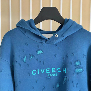 法国高奢25fw高版本经典字母印花破洞重磅高街宽松潮百搭帽衫卫衣