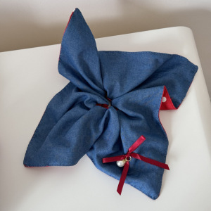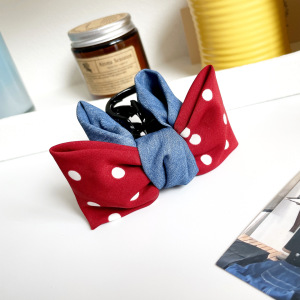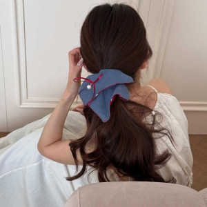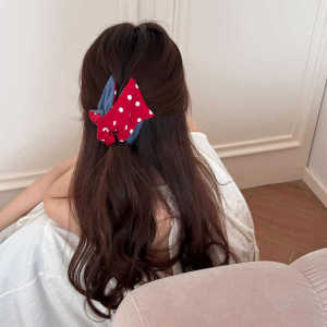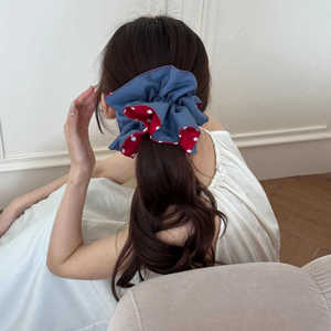 牛仔红波点大肠方巾发圈高颜值蝴蝶结气质高级感气质百搭小众发圈