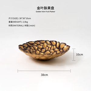 现代中古风金色叶脉果盘置物收纳创意摆件桌面餐桌客厅家居装饰品