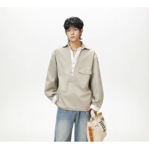Eon Modish 25秋季新品美式街潮高街撞色假两件宽松长袖衬衫