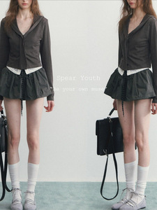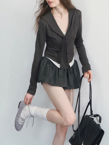 SPEAR YOUH“镜头里的你”假两件蕾丝外套修身海军领长袖上衣