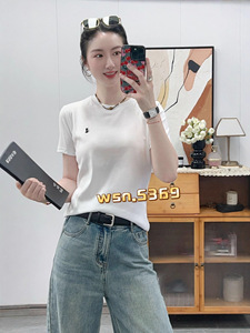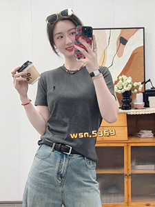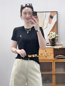 2025新款时尚休闲圆领简约刺绣百搭正肩短袖T恤打底衫女内搭5369