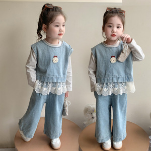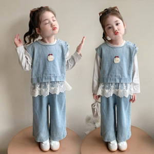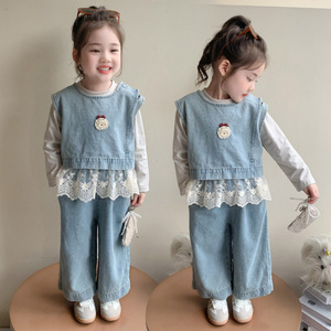 女童套装秋装2025新款洋气儿童宝宝超好看牛仔三件套女宝宝秋季