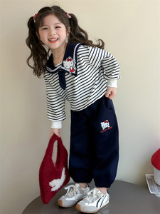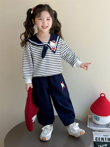女童套装春秋装2025新款儿童洋气女宝宝条纹卫衣休闲裤秋季两件套
