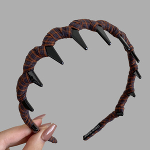 早秋简约布艺缠绕齿梳发箍女增高颅顶显脸小头箍外戴带齿波浪发箍