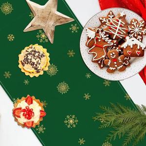 新款绿色圣诞节装饰桌旗节日派对厨房餐桌装饰台布垫茶旗跨境桌布