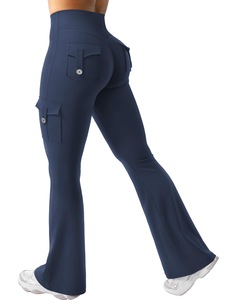 亚马逊运动喇叭紧身裤带口袋隐形弹力高腰工装健身房户外瑜伽长裤