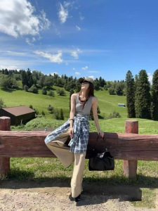 南油高版本2025秋季RL新款复古韩版格子长袖衬衫女慵懒风宽松上衣