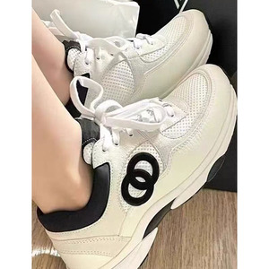 小香风熊猫休闲鞋女2025新款网面透气增高厚底系带拼色老爹鞋外贸