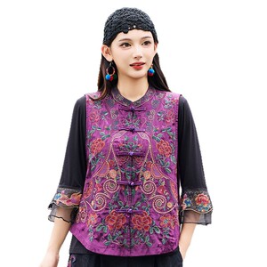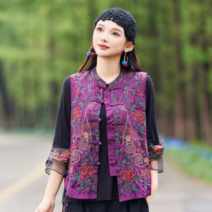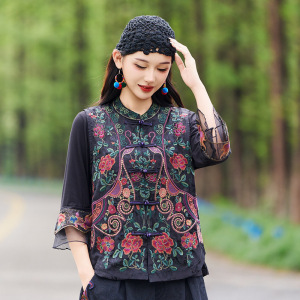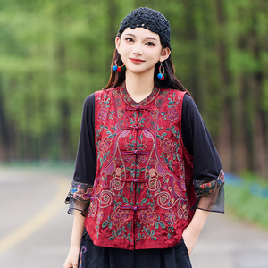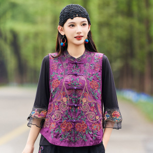 民族风女装盘扣绣花马夹坎肩外套无袖休闲背心中式马甲上衣罩衣