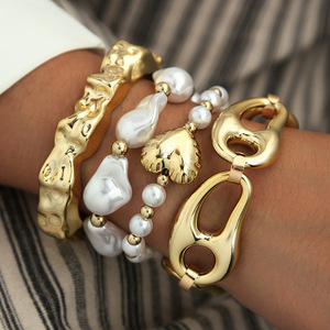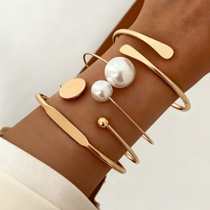 3件跨境欧美热销几何夸张多层缠绕开口女士手链套装 朋克风格手镯