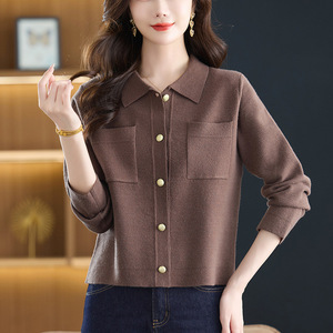 针织开衫春秋外搭大码女装2025新款气质减龄翻领毛衣秋季纯色外套