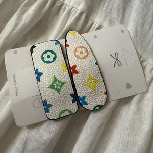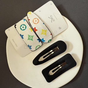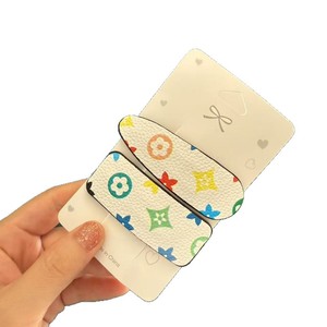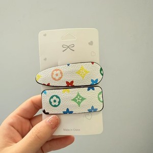 新款白色皮革时尚老花碎花油边发夹发饰现货批发