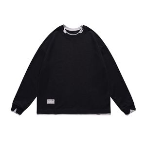 美式复古字母印花假两件卫衣男女宽松休闲毛边缺口设计感套头上衣