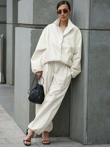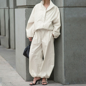 秋冬新款运动风风衣外套灯笼裤套装女设计感气质户外休闲2025跨境