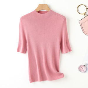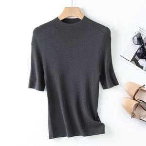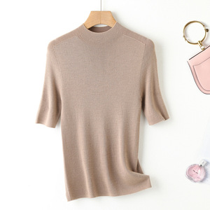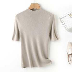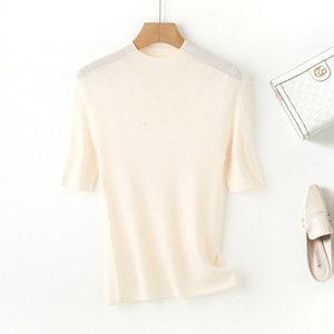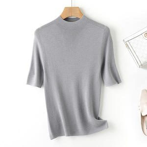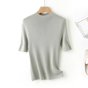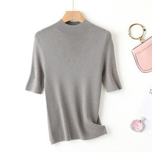 细支精纺半高领羊毛针织衫秋季修身显瘦打底衫内搭中袖女装上衣
