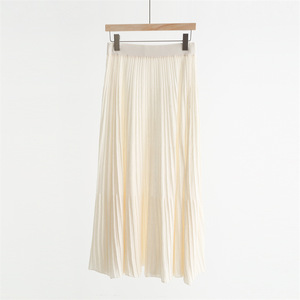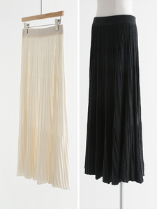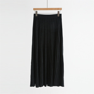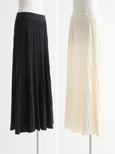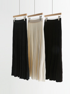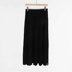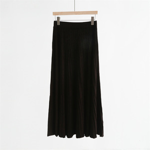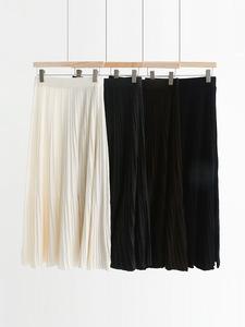 优雅仙气大裙摆 羊毛竖褶皱肌理松紧腰针织半身裙中长款伞裙32301