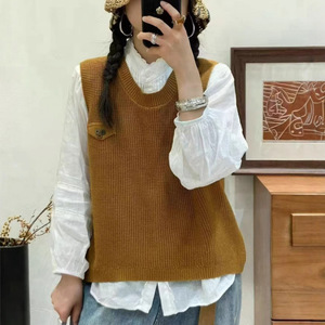 针织马甲 2025春季新款 复古宽松纯色圆领套头马夹女百搭上衣叠穿