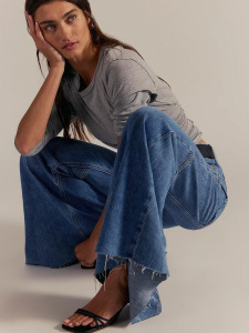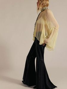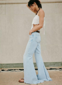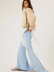 速卖通跨境热卖欧美女装拼接高腰修身长裤大喇叭拖地牛仔长裤女