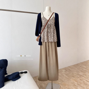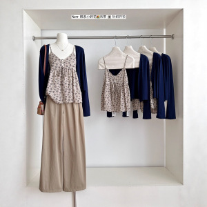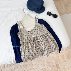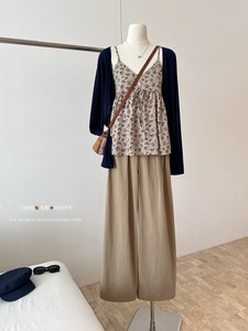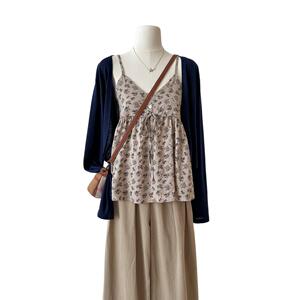 2025实拍秋上新!小碎花吊带上衣+针织防晒开衫套装