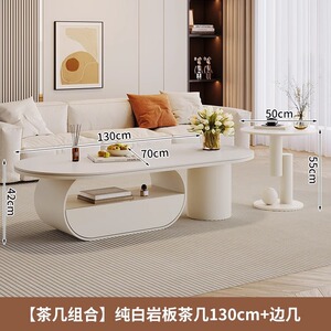 【茶几组合】纯白岩板茶几130*70*42cm+50边几