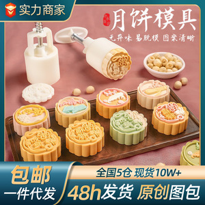 中秋月饼模具流心50克6片绿豆糕南瓜糕手压卡通糕点冰皮压花模具
