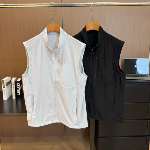 0809x1~休闲户外运动防水防风立体印花凉感弹力男士立领马甲外套