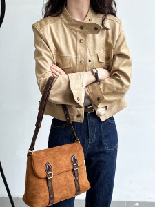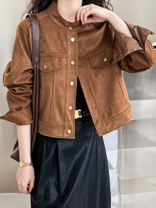 NS甜酷机车短款外套女秋季新款设计感麂皮绒工装夹克上衣7062