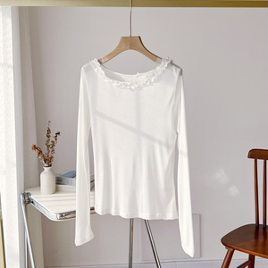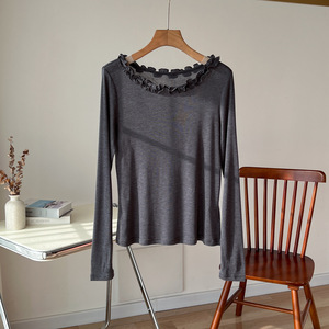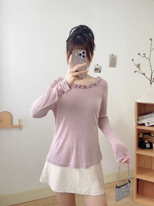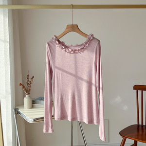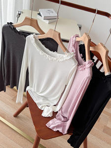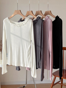 实力工厂 莱赛尔羊毛木耳边一字领长袖T恤女士裸感亲肤打底衫25秋
