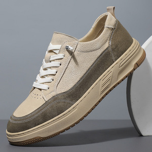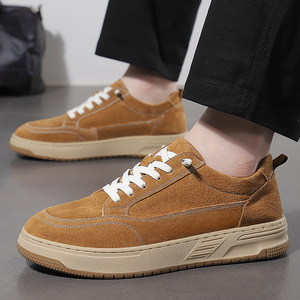 男鞋2025秋季新款反绒猪皮板鞋子潮日常真皮运动鞋休闲系带板鞋男