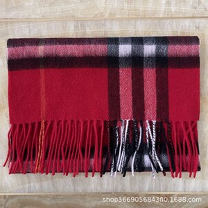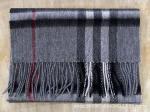 高端经典情侣款羊绒格子围巾女秋冬季百搭英伦红色外搭披肩驼色男