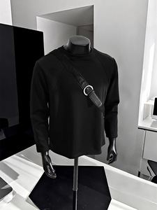 灰色boxy小领口长袖t恤男款秋季重磅内搭打底衫cleanfit圆领卫衣