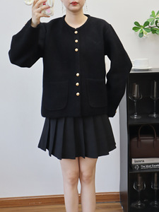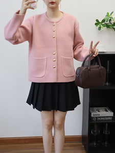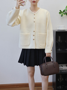 圆领宽松针织双面呢开衫2025秋冬新款气质小香风高级感毛衣外套女
