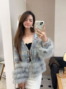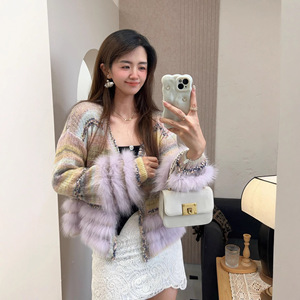 2025新款欧货车条狐狸毛皮草开衫毛衣针织衫百搭小香风女装外套短
