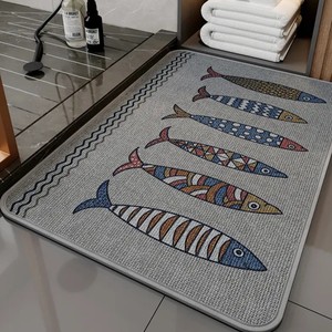 新款卡通浴室地垫卫生间吸水门口防滑脚垫厕所进门仿亚麻L纹地毯