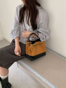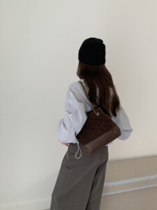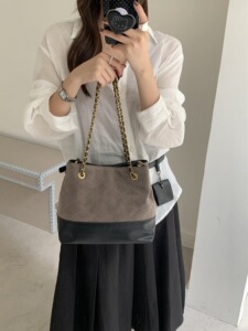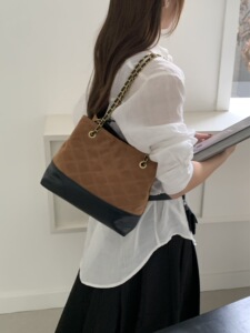 韩系高级感复古拼接菱格设计小众时尚洋气麂皮绒单肩腋下手提包女