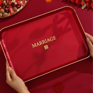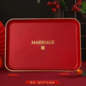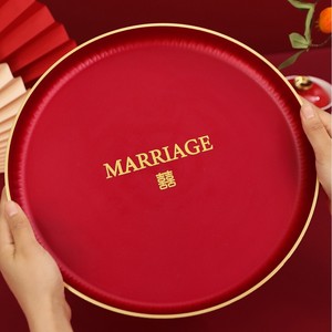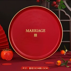 红色敬茶盘方盘圆盘婚礼果盘喜吧结婚订婚客厅茶几果盘喜糖盘子