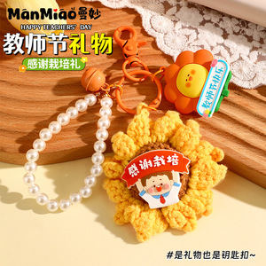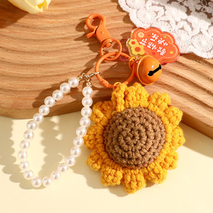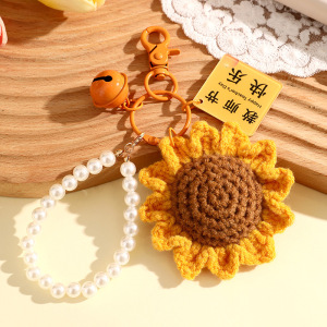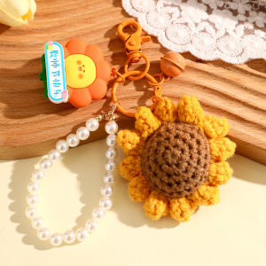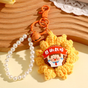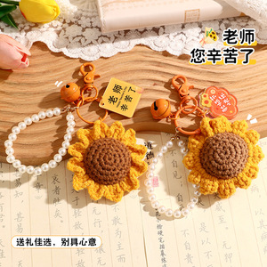 正版手工编织向日葵实用礼品钥匙扣珍珠链挂饰送老师教师礼物批发