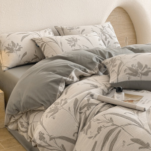 Z60支纯棉双层纱床上四件套100全棉床品简约2米被套床单三件套床