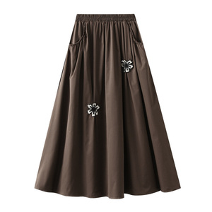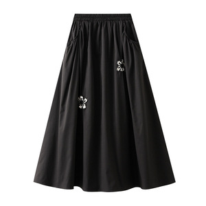 黑色刺绣高腰垂感半身裙女秋季韩系设计感宽松A字大摆裙子2531