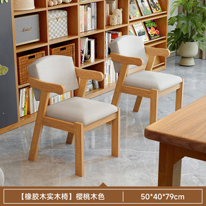 全橡胶木搭配樱桃木色实木椅*2【橡胶木框架】