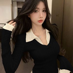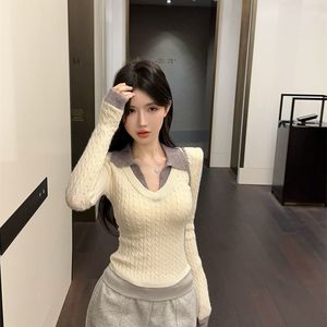 法式学院风假两件Polo领针织衫女纯欲v领上衣打底衫内搭麻花