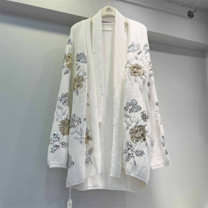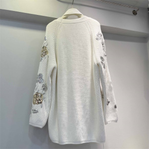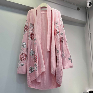 宽松慵懒风重工拼接亮片设计感系带收腰显瘦针织开衫外套上衣女秋