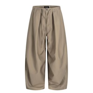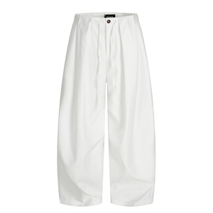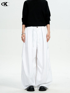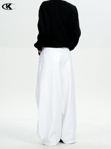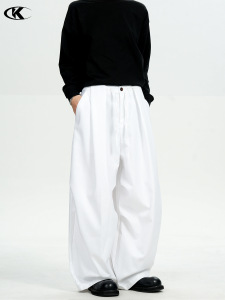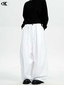 11KN美式复古弯刀西裤男女纯色双打褶皱设计感宽松直筒休闲阔腿裤