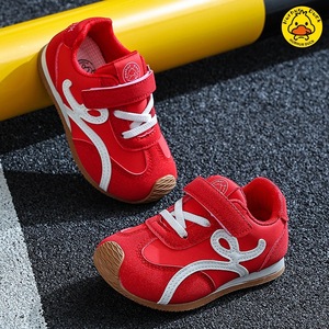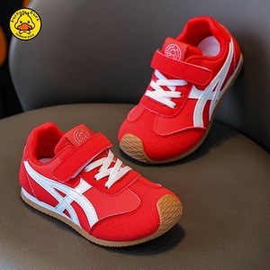 皮面红色阿甘鞋女童2025新款秋季男童鞋子运动鞋男童休闲鞋中大童