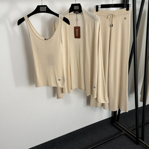 南油新款针织套装金属圈装饰长袖针织开衫+吊带背心+高腰阔腿长裤