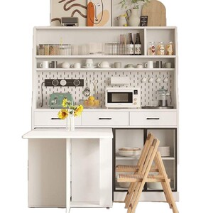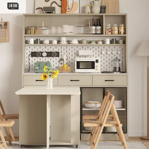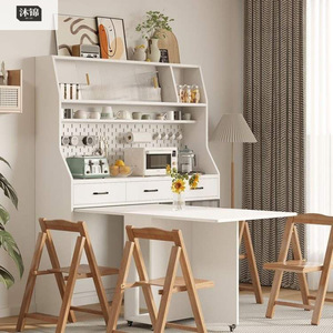 北欧折叠餐桌一体家用餐厅收纳橱柜餐边柜靠墙小户型茶水储物柜