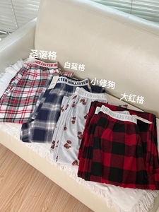 小海鸥格子裤hol*ister字母休闲宽松显瘦高腰直筒阔腿欧美风睡裤